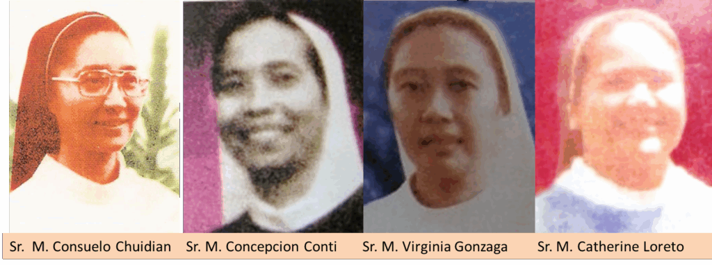 Their friend and benefactor, Edith Yap, regularly brought red roses to the community on November 21 for the Feast of the Presentation of Our Lady. That particular day, she unsuccessfully searched the flower shops and the markets for red roses, but finding none, she bought white roses and brought these to Reach Out. When Edith explained this to Sr. Mary Josephine, she saw it as an omen and felt apprehensive and anxious about the four sisters. Later, upon receiving the news, she was disconsolate, saying she was due to travel with the sister to Cebu City, but she gave up her space for Sr. Mary Catherine, who so dearly wanted to attend the retreat.