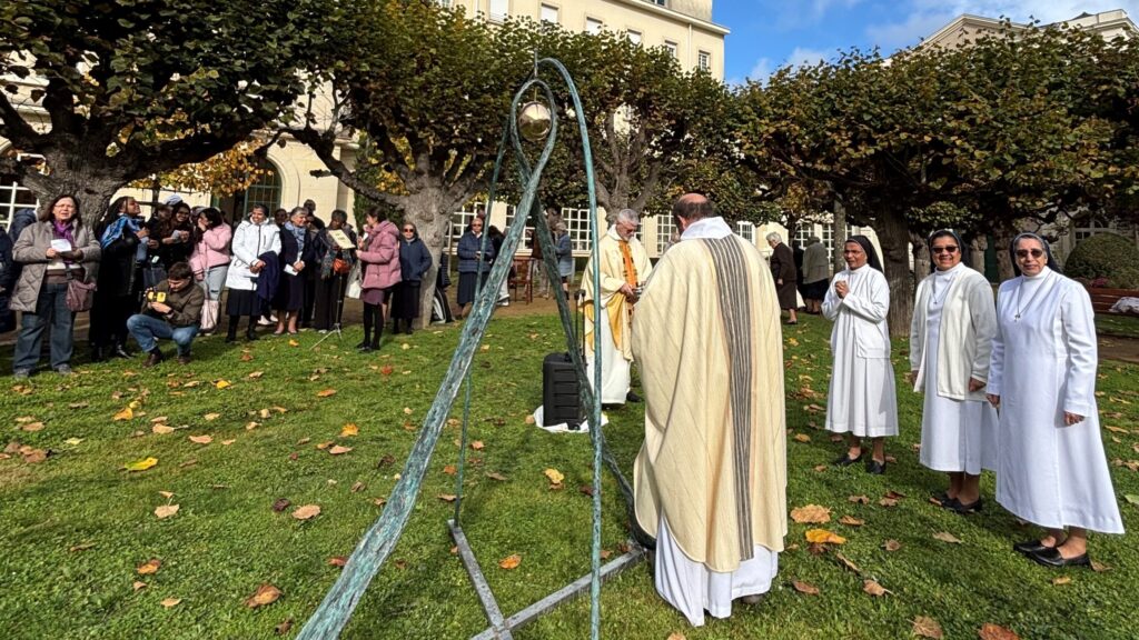 The day was marked by a moving musical and theatrical performance that brought the history of the congregation to life through four authentic characters. A central feature of the celebration was the inauguration of the bronze sculpture “Porteuse d’Espérance” (Bearer of Hope). This radiant artwork, designed to capture the light and air of the garden, serves as a tribute to the contemplative life—rooted in the earth yet moving confidently toward the future. It honors the silent, prayerful support that the sisters provide to the mission, carrying the sufferings of the world in the silence of their hearts.